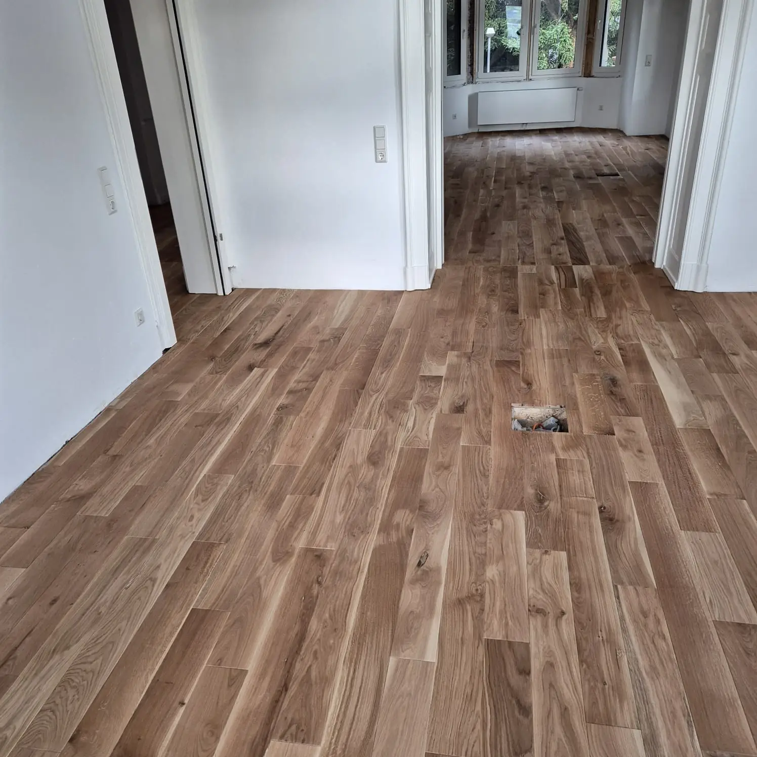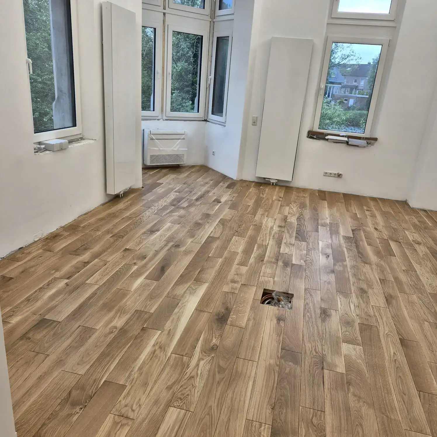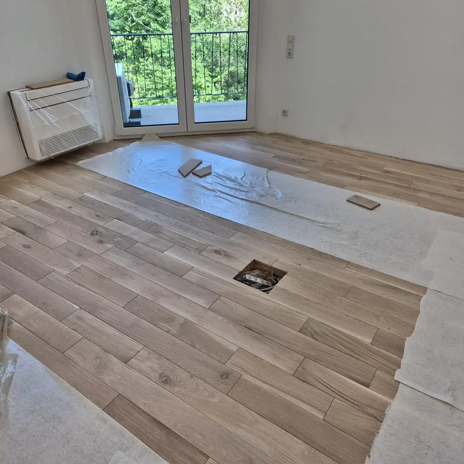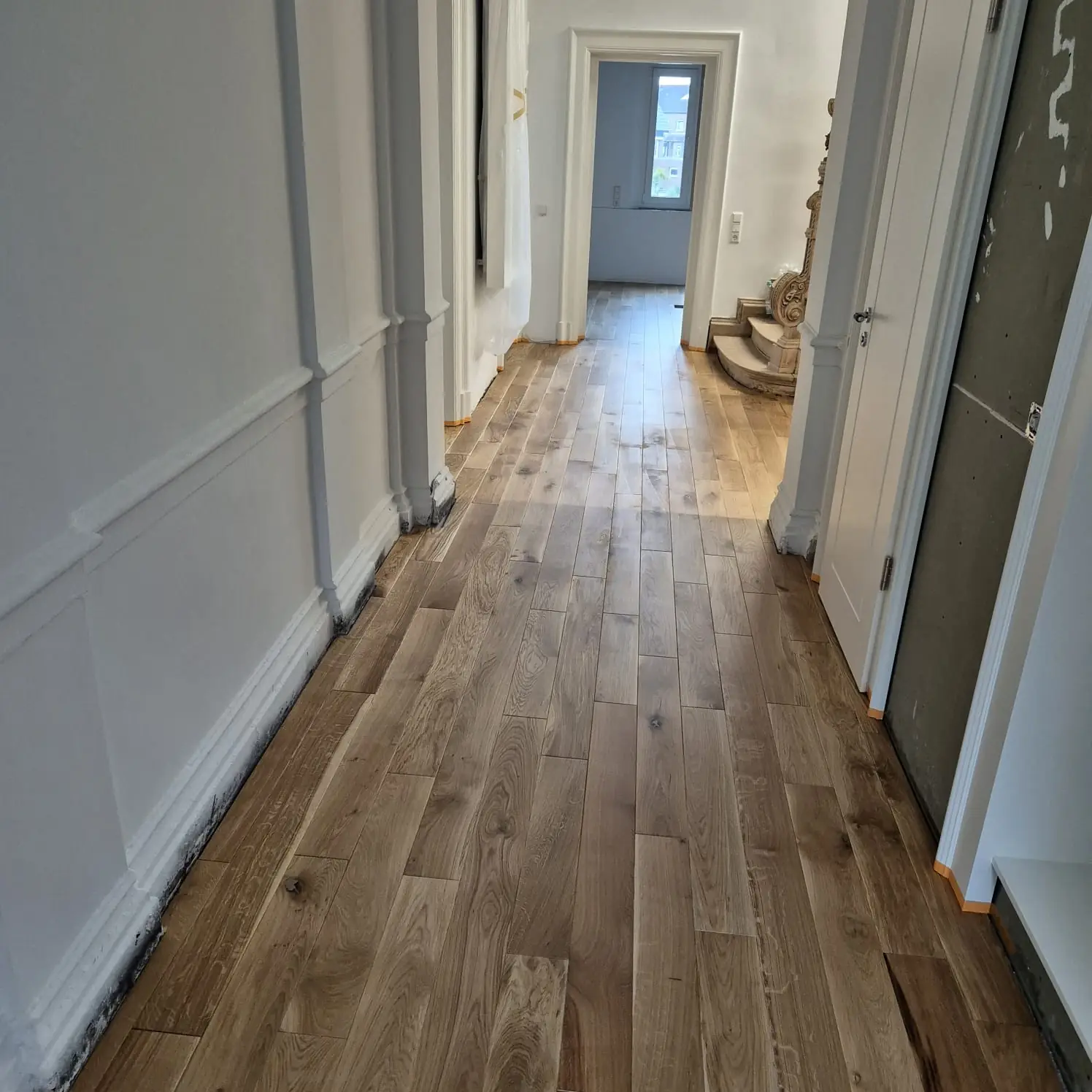 Natürlich, robust oder elegant – ganz so, wie es zu Eurem Zuhause passt. Und weil bei uns Handwerk und Ästhetik immer zusammengehören, übernehmen wir in Absprache alles für Euch: von der Auswahl über die fachgerechte Verlegung bis zur perfekten Oberfläche.