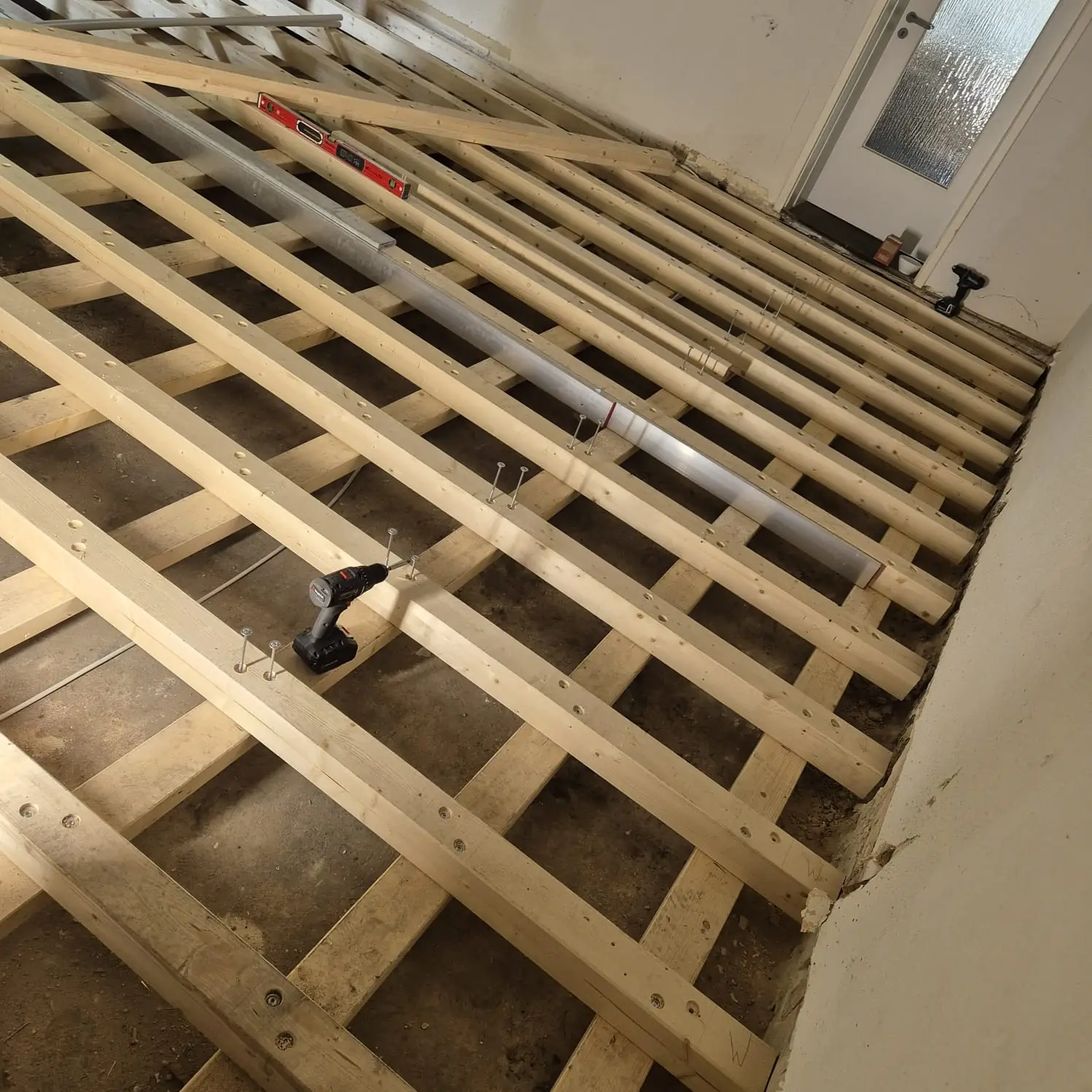 Wir bauen stabile Unterkonstruktionen, nivellieren unebene Flächen aus, dämmen Schall und sorgen dafür, dass der neue Boden ruhig, eben und dauerhaft belastbar bleibt.